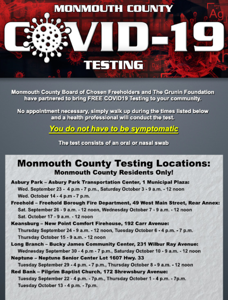 Monmouth County Offers Free Covid 19 Testing Through Mid October Tapinto